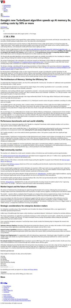 Google’s TurboQuant Algorithm Achieves 8x Speedup, Cuts AI Memory Costs by 50%